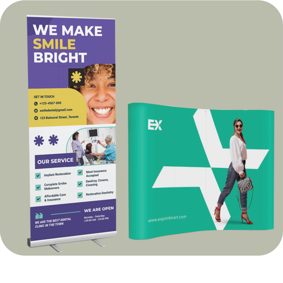 This roll-up banner is for announcing events, has a sturdy design, is fully customizable, is printed on vinyl, and has a stable base stand.